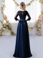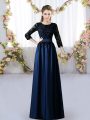 Chic 3 4 Length Sleeve Satin Floor Length Zipper Quinceanera Court Dresses in Navy Blue with Lace