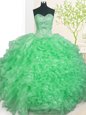 Chic Apple Green Organza Lace Up Sweet 16 Dresses Sleeveless Floor Length Beading and Ruffles and Pick Ups