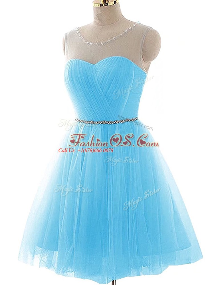 Chic Aqua Blue Lace Up Teens Party Dress Beading and Ruching Sleeveless Mini Length