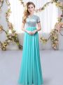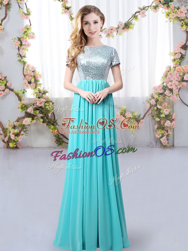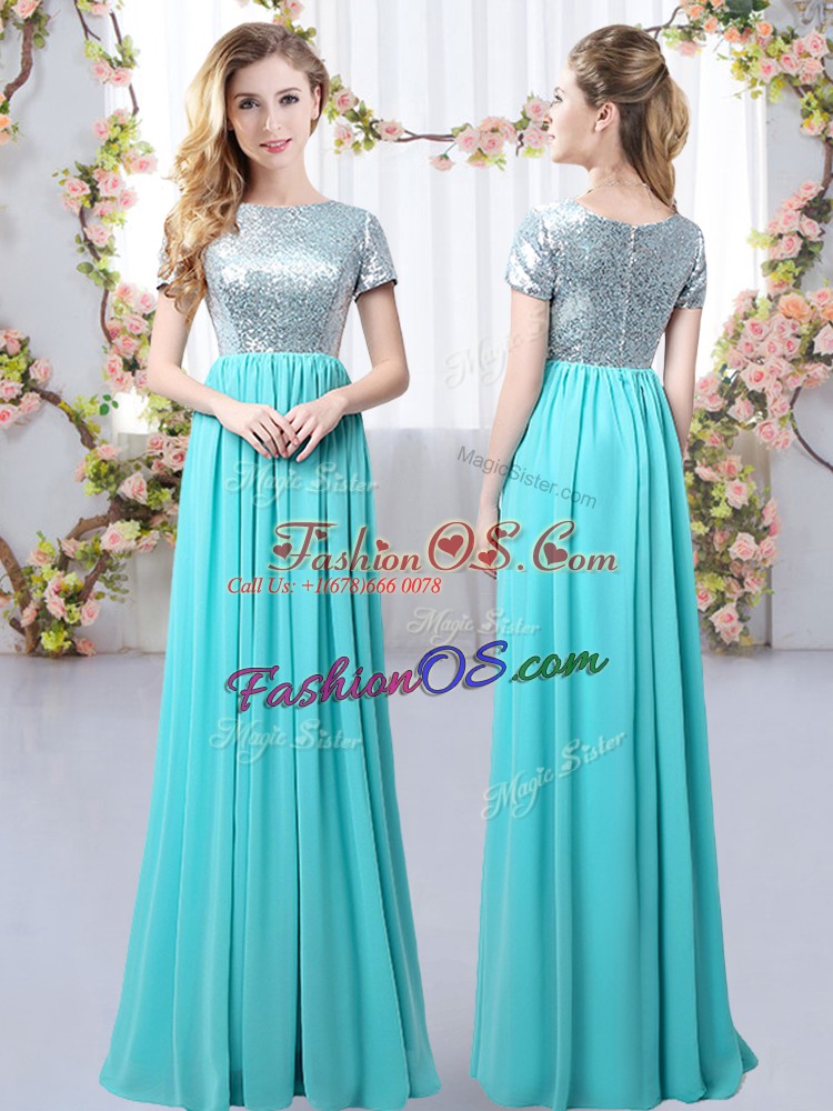 Chic Aqua Blue Scoop Zipper Sequins Bridesmaids Dress Short Sleeves