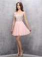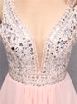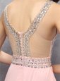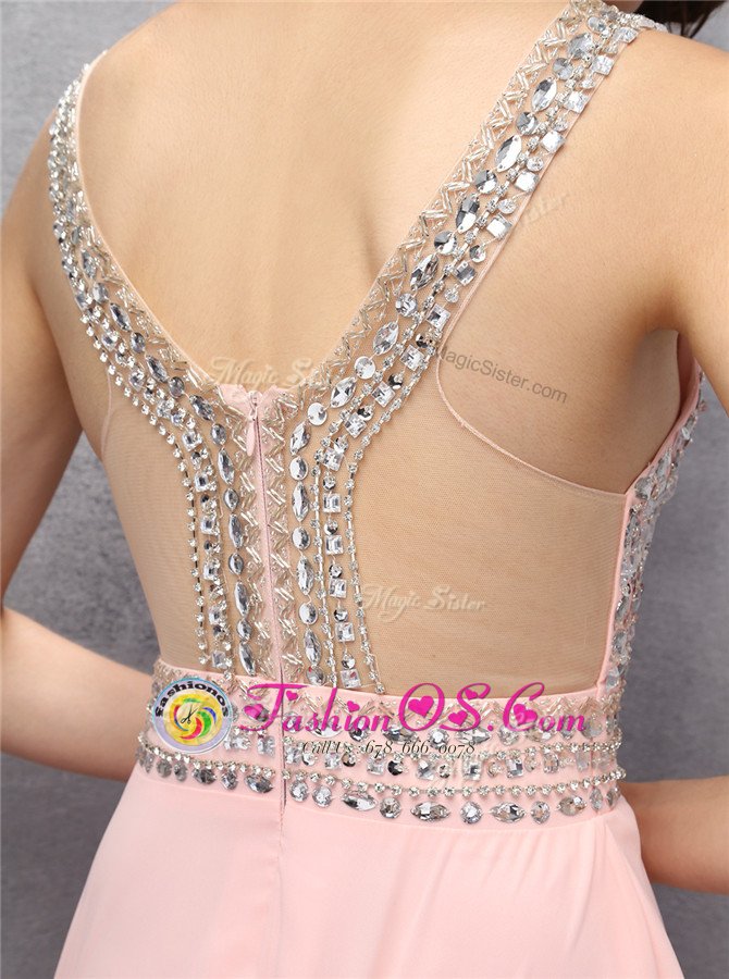 Chic Baby Pink A-line Beading Prom Gown Zipper Chiffon Sleeveless Knee Length