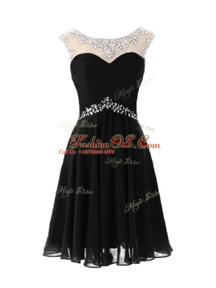 Chic Black Cap Sleeves Knee Length Beading Zipper Prom Evening Gown