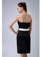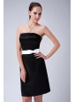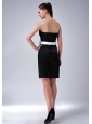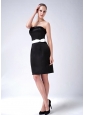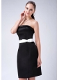 Chic Black Column Strapless Bow Bridesmaid Dress Mini-length Satin