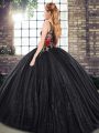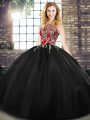 Chic Black Scoop Neckline Embroidery Quinceanera Gown Sleeveless Zipper