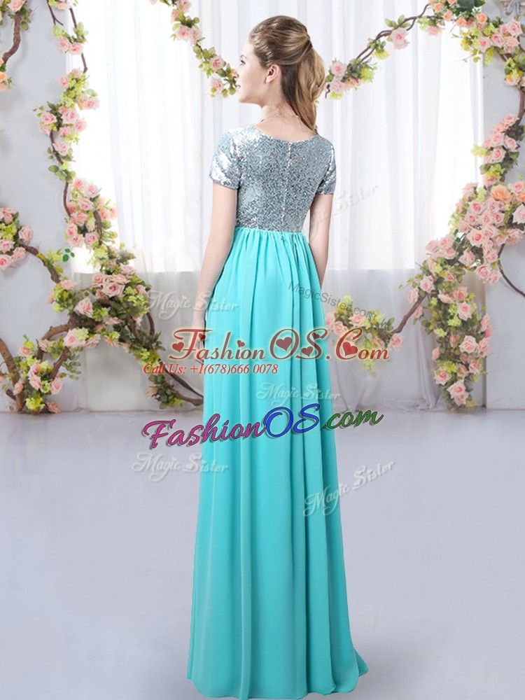 Chic Lavender Empire Sequins Dama Dress Zipper Chiffon Short Sleeves Floor Length