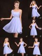 Home >  Bridesmaid Dresses >  Discount Bridesmaid Dresses > Chic Lavender Empire Straps Sleeveless Chiffon Mini Length Zipper Ruching and Bowknot Bridesmaid Dresses