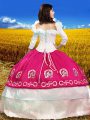 Chic Off The Shoulder 3 4 Length Sleeve Quinceanera Dresses Floor Length Embroidery Hot Pink Taffeta