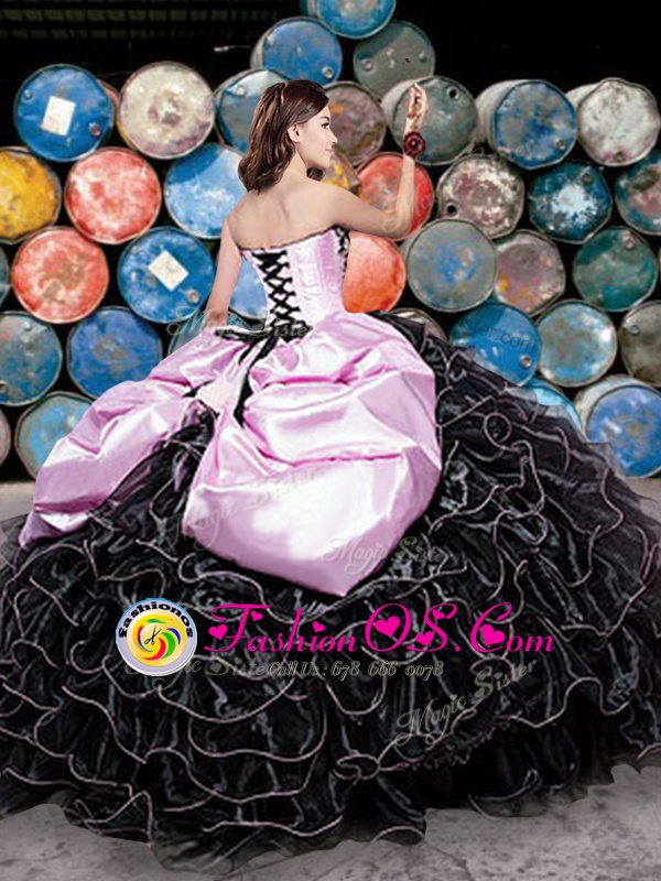 Chic Organza Sweetheart Sleeveless Lace Up Beading and Ruffles and Pick Ups Quince Ball Gowns in Black