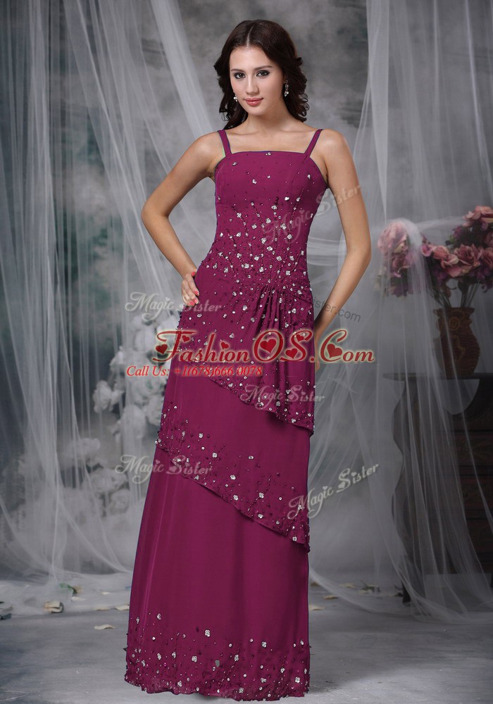 Chic Purple Empire Straps Sleeveless Chiffon Floor Length Zipper Beading Mother Of The Bride Dress
