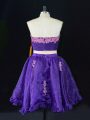 Chic Purple Sleeveless Mini Length Appliques and Ruffles Zipper Prom Dress