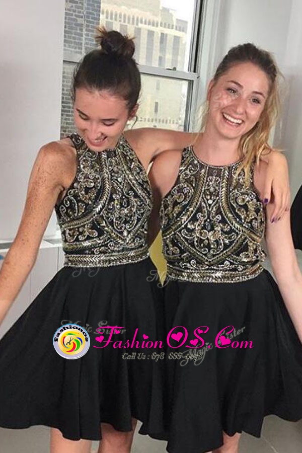 Home >  Special Occasion Dresses >  Cocktail Dresses > Chic Scoop Black Chiffon Zipper Club Wear Sleeveless Mini Length Beading