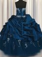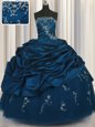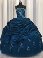 Home >  Quinceanera Dresses >  In Stock Quinceanera Dresses > Chic Sleeveless Floor Length Beading and Appliques and Embroidery and Pick Ups Lace Up Quinceanera Gowns with Teal