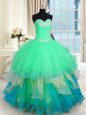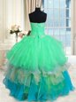 Chic Sleeveless Organza Floor Length Lace Up Quinceanera Gown in Purple for with Beading and Ruffled Layers