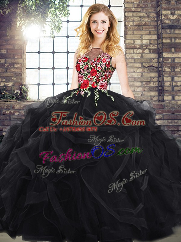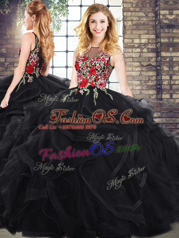 Chic Sleeveless Zipper Embroidery and Ruffles Sweet 16 Dress
