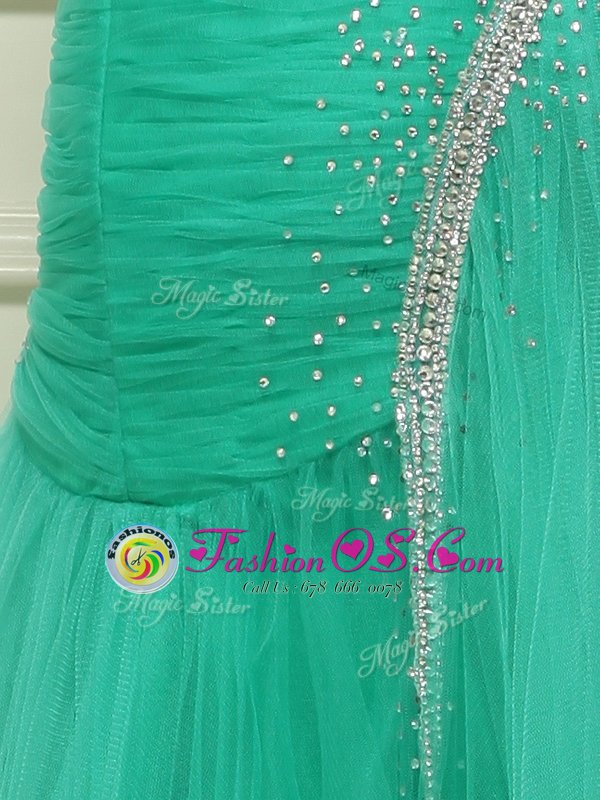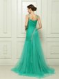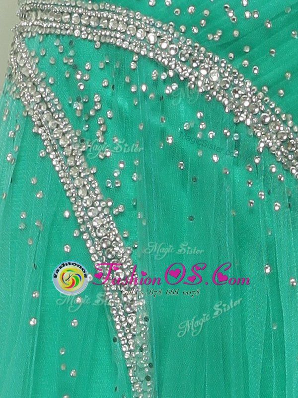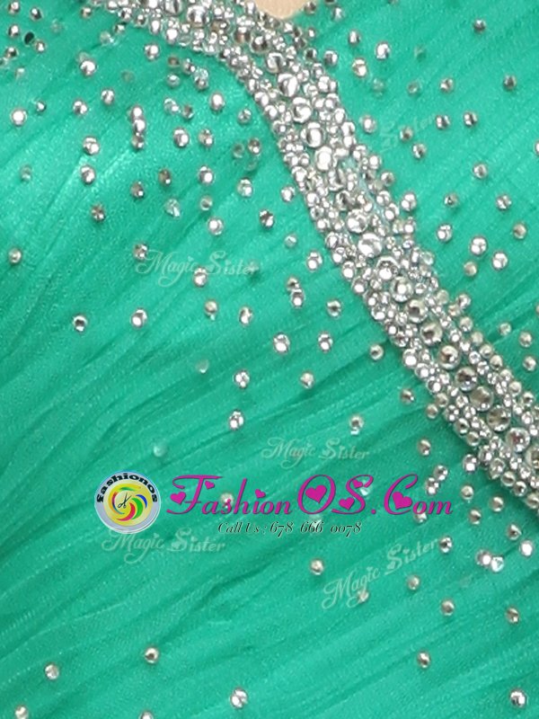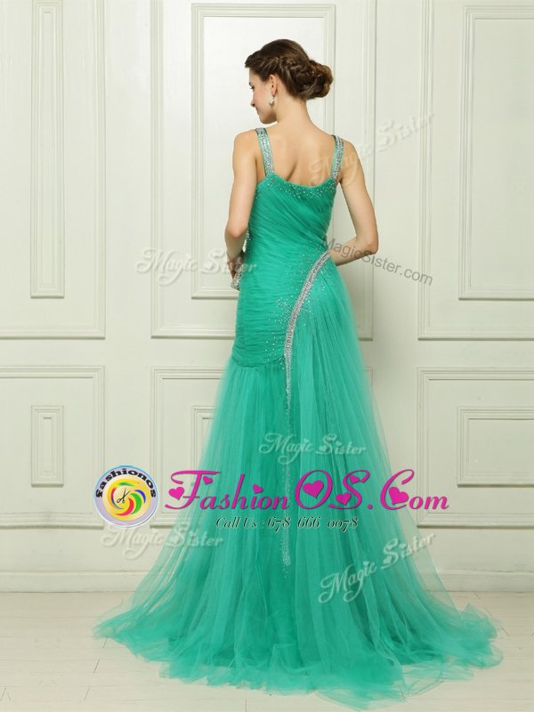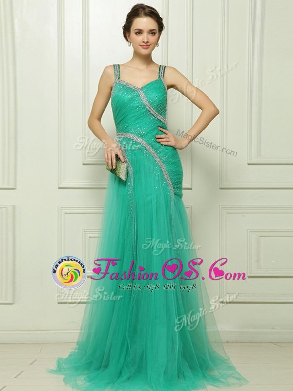 Home >  Prom Dresses >  Fashionable Prom Dresses > Chic Straps Sleeveless Brush Train Side Zipper Homecoming Dress Turquoise Organza