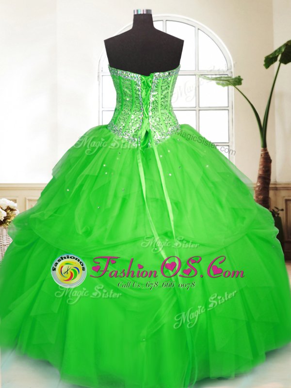 Chic Sweetheart Sleeveless Tulle Quinceanera Gowns Sequins and Pick Ups Lace Up
