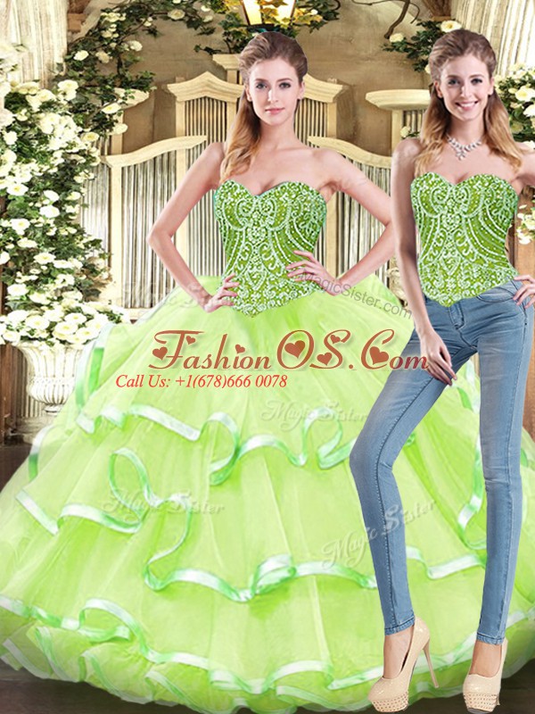 Chic Two Pieces Sweet 16 Dress Yellow Green Sweetheart Organza Sleeveless Floor Length Lace Up