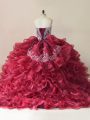 Chic Wine Red Sleeveless Organza Brush Train Lace Up Sweet 16 Dress for Sweet 16 and Quinceanera