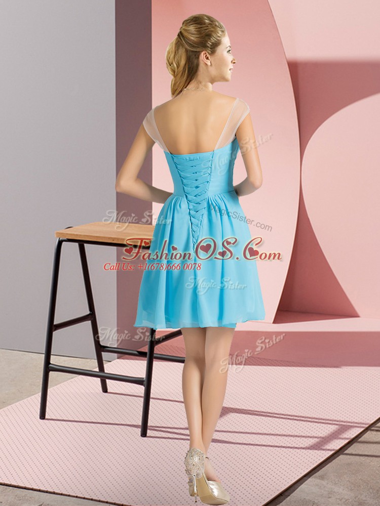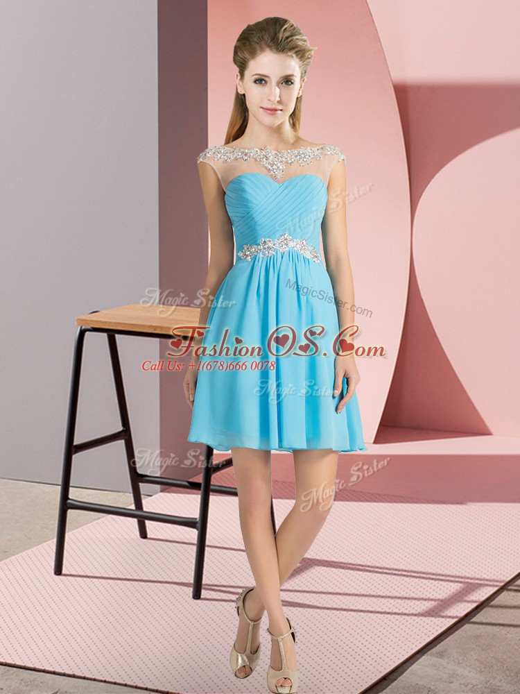 Chiffon Bateau Cap Sleeves Lace Up Beading Quinceanera Dama Dress in Aqua Blue