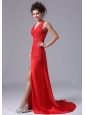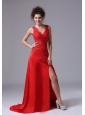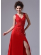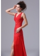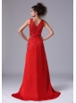 Chiffon Beading Brush/Sweep V-neck Red 2013 Prom Celebrity Dress