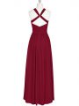 Chiffon Halter Top Sleeveless Zipper Ruching Prom Dresses in Burgundy