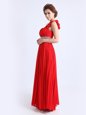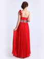 Home >  Prom Dresses >  Prom Dresses On Sale > Chiffon One Shoulder Sleeveless Zipper Beading and Ruching and Pleated Evening Dress in Red