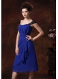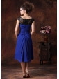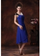Chiffon Ruched Straps Navy Blue 2013 Tea-length Bridesmaid Dress