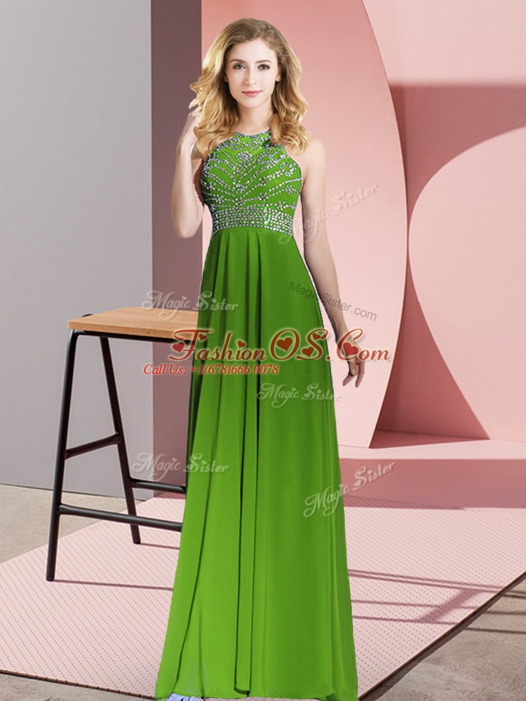 Chiffon Scoop Sleeveless Backless Beading Juniors Party Dress in Green
