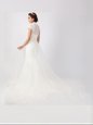 Chiffon Short Sleeves With Train Wedding Gowns Chapel Train and Lace