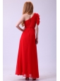 Home >  Prom Dresses >  Fashionable Prom Dresses > Chiffon Simple Empire One Shoulder Beading Short Sleeves Red Prom Dress