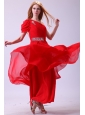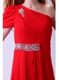 Chiffon Simple Empire One Shoulder Beading Short Sleeves Red Prom Dress