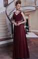 Chiffon Sleeveless Floor Length Prom Evening Gown and Beading and Ruching