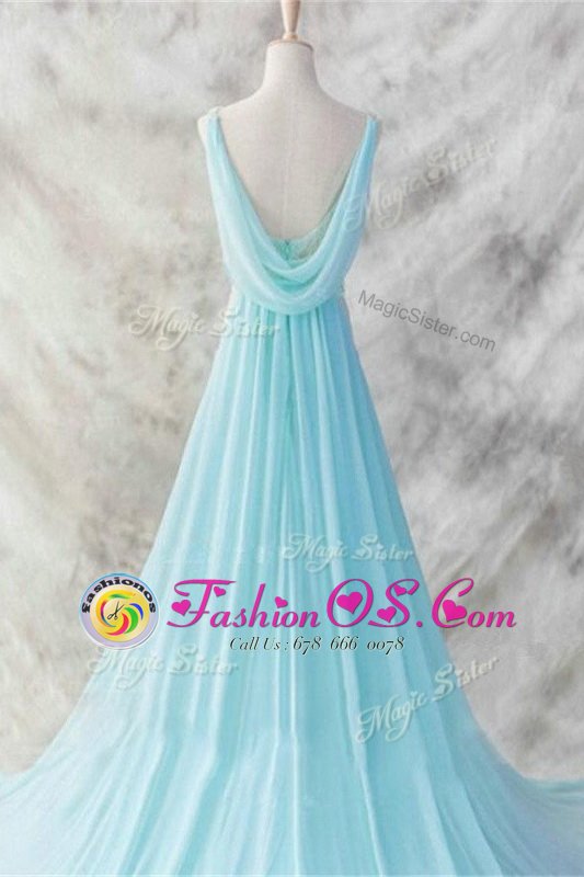 Chiffon Sleeveless Homecoming Dress Brush Train and Belt