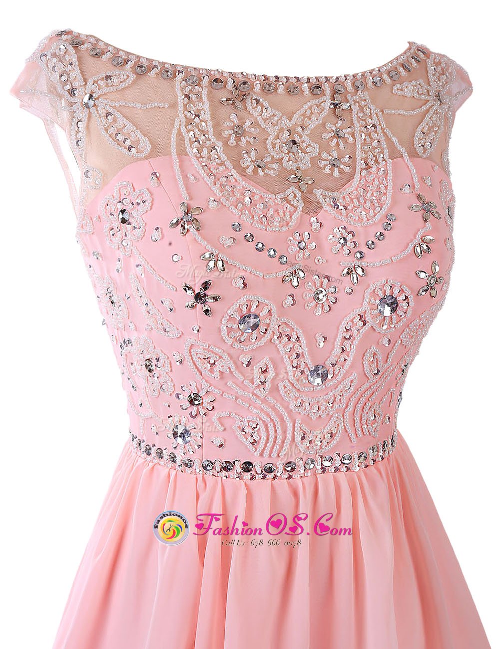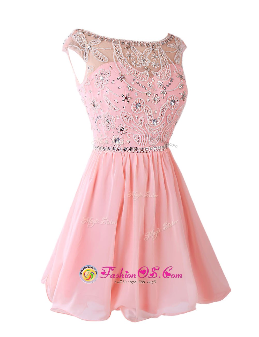 Home >  Prom Dresses >  Perfect Prom Dresses > Chiffon Sleeveless Knee Length Prom Evening Gown and Sashes|ribbons
