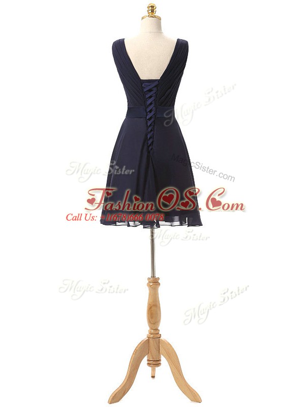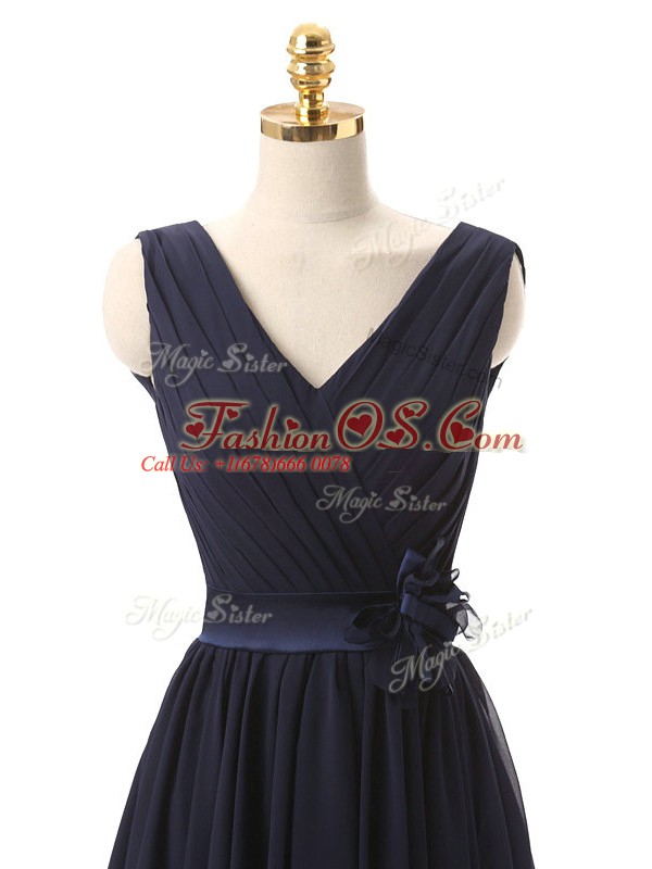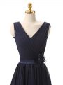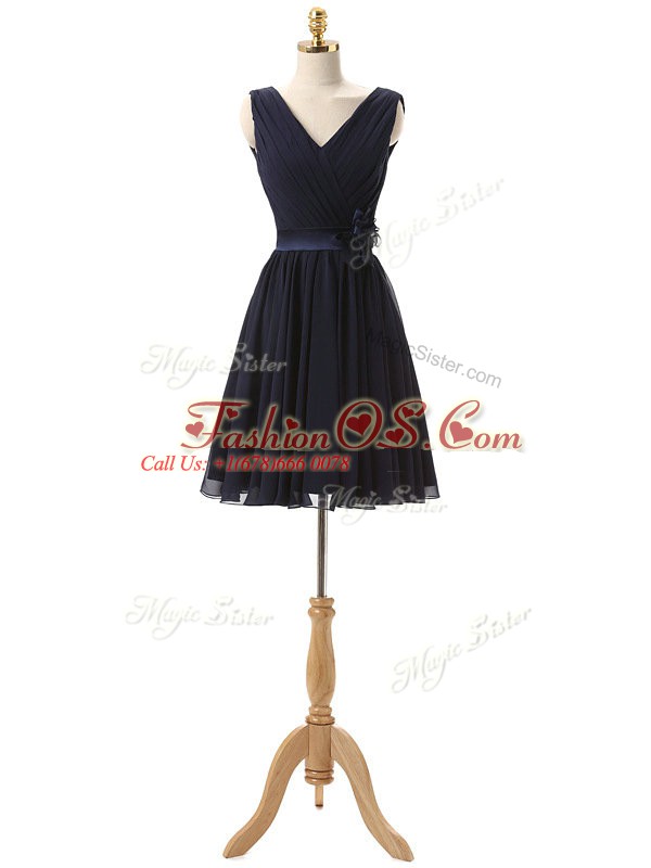 Chiffon Sleeveless Mini Length Bridesmaid Dress and Hand Made Flower