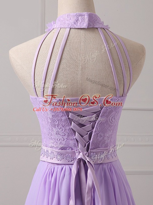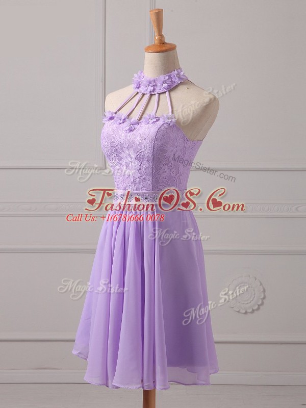 Chiffon Sleeveless Mini Length Bridesmaid Dress and Lace and Appliques