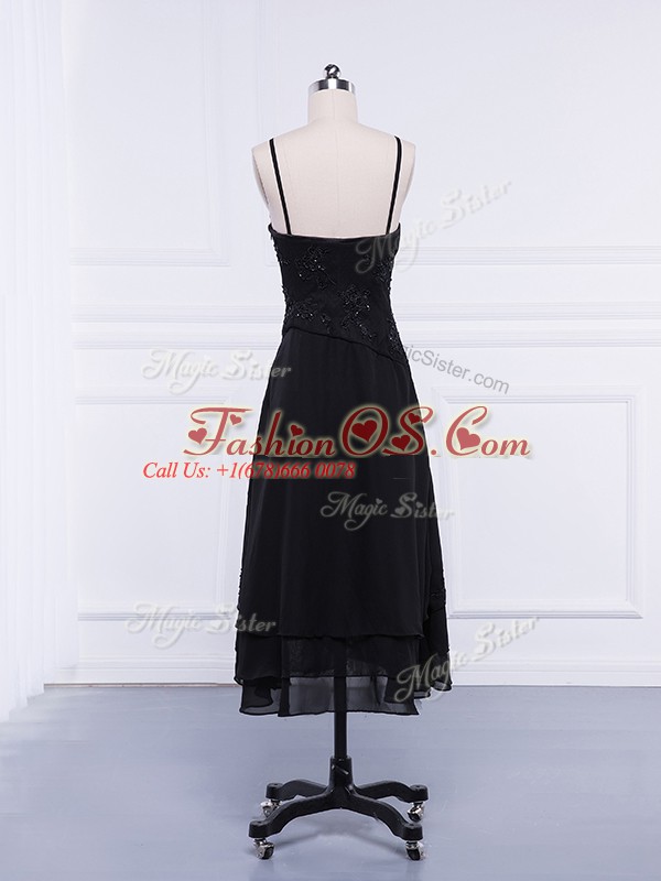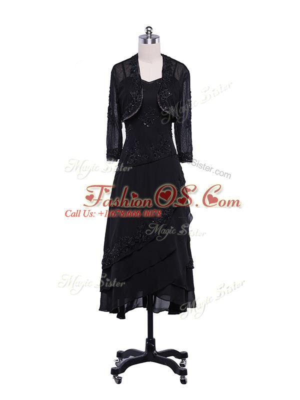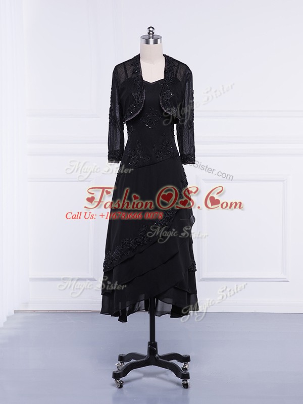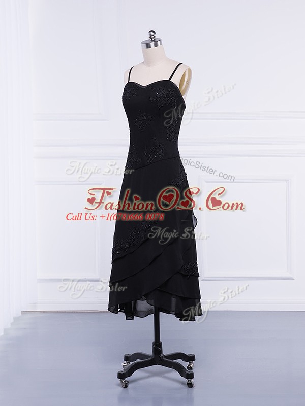 Chiffon Sleeveless Tea Length Mother Of The Bride Dress and Lace and Appliques