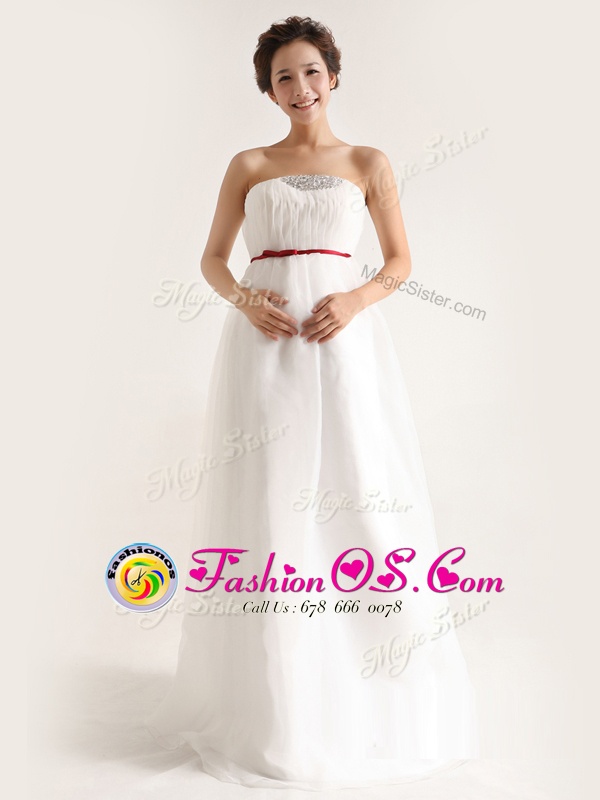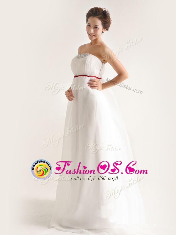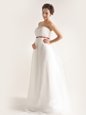 Home >  Wedding Dresses >  Fashionable Wedding Dresses > Chiffon Strapless Sleeveless Brush Train Side Zipper Beading Wedding Dresses in White