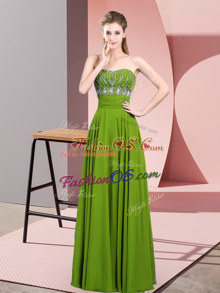 Chiffon Strapless Sleeveless Zipper Beading Prom Gown in Green