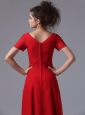 Home >  Special Occasion Dresses >  Mother of the Bride Dresses > Chiffon V-Neck Column Red Ankle-length Mother of the Bride Dress Short Sleeves