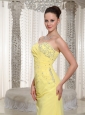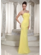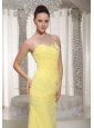 Chiffon Yellow Sweetheart Prom Dress For Greaduation With Ruched Beading Decorate