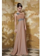 Home >  Prom Dresses >  Cheap Prom Dresses > Chocolate Empire One Shoulder Brush Train Elastic Woven Satin and Chiffon Beading and Ruch Prom / Celebrity Dress