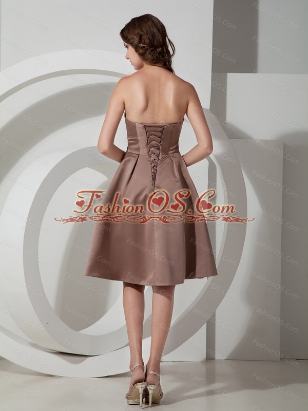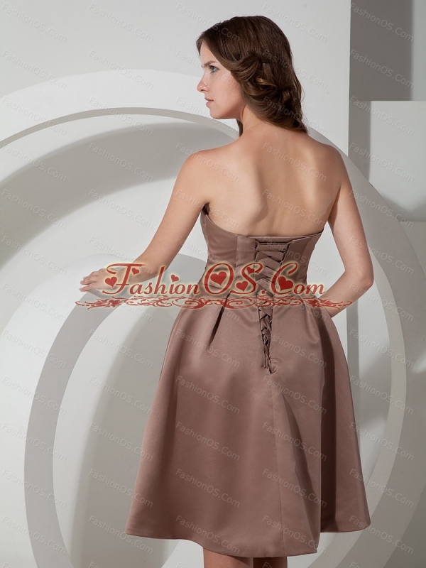 Home >  Special Occasion Dresses >  Dama Dresses for Quinceanera > Chocolate Strapless Knee-length Beading Dama Dress