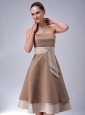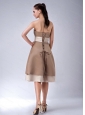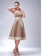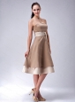 Chocolate Strapless Tea-length Satin 2013 Dama Dress