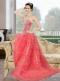 Home >  Prom Dresses >  Prom Dresses On Sale > Classical 2015 Appliques and Ruffles Prom Dress in Watermelon