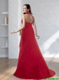 Classical 2015 Halter Top Red Prom Dress with Brush Train