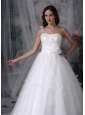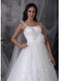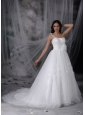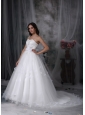Home >  Wedding Dresses >  Ball Gown Wedding Dresses > Classical A-line One Shoulder Wedding Dress Tulle Hand Made Flowers and Beading Watteau Train