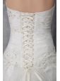 What a gorgeous weddign dress! This wedding dress features a strapless bodice. The fitted design and the dropped waist will show your curves perfectly well. For the skirt, it features a tulle split. The ruffles on the front makes the dress so romantic, while the chapel train adds more delicate to the dress. Do you want to wow the crowd on your wedding? This dress is your best choice.