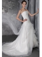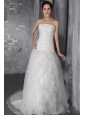 Classical A-Line / Princess Strapless Chapel Train Organza Wedding Dress