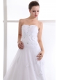 Home >  Wedding Dresses >  Popular Wedding Dresses > Classical A-line Strapless Beading Wedding Dress Brush Train Taffeta and Organza